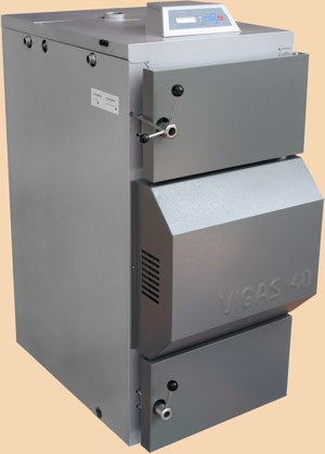 Cazan Vigas 40 S gazeificare pe lemne si brichete ,produce intre 8-41 Kw cu serpentina de racire inclus poate comanda puffer si poate primi si termostat de ambianta